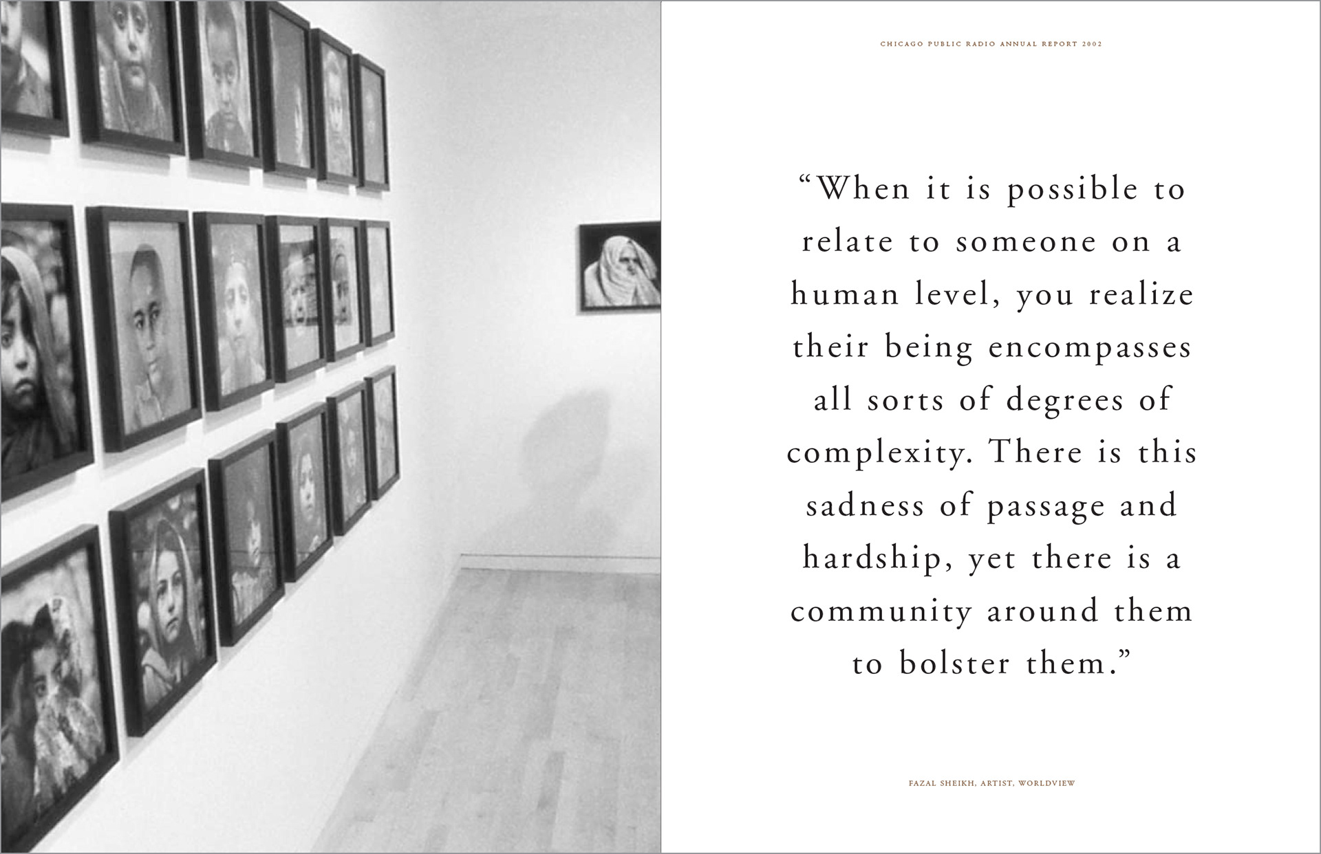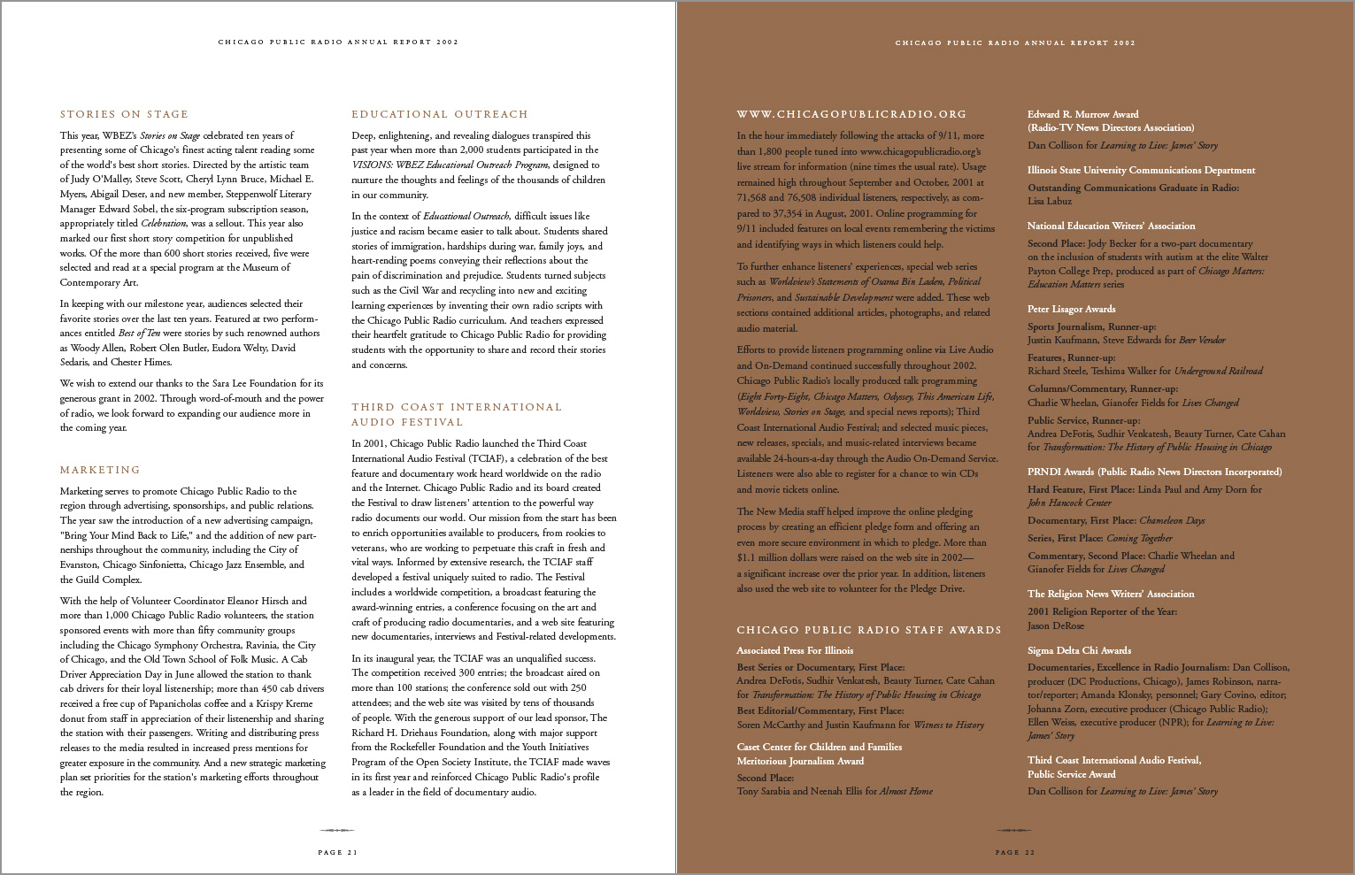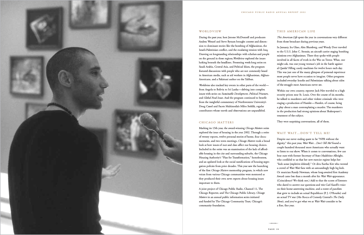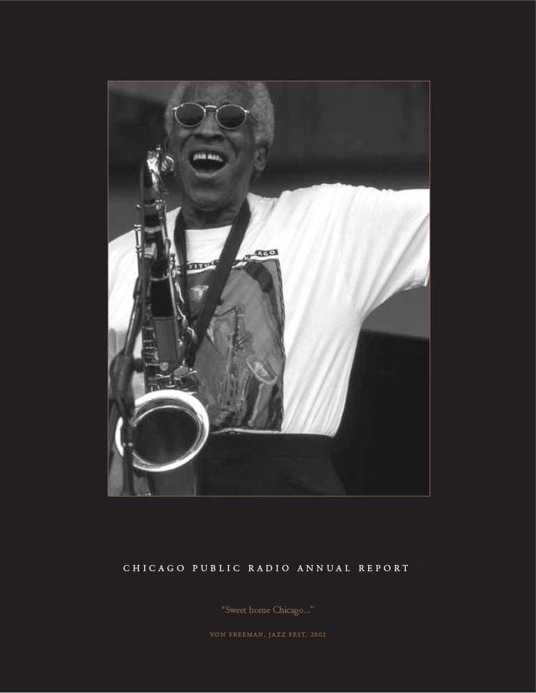 This annual report brought into focus the depth and breadth of Chicago Public Radio's local, national and international news coverage. Photography: Tony Armour